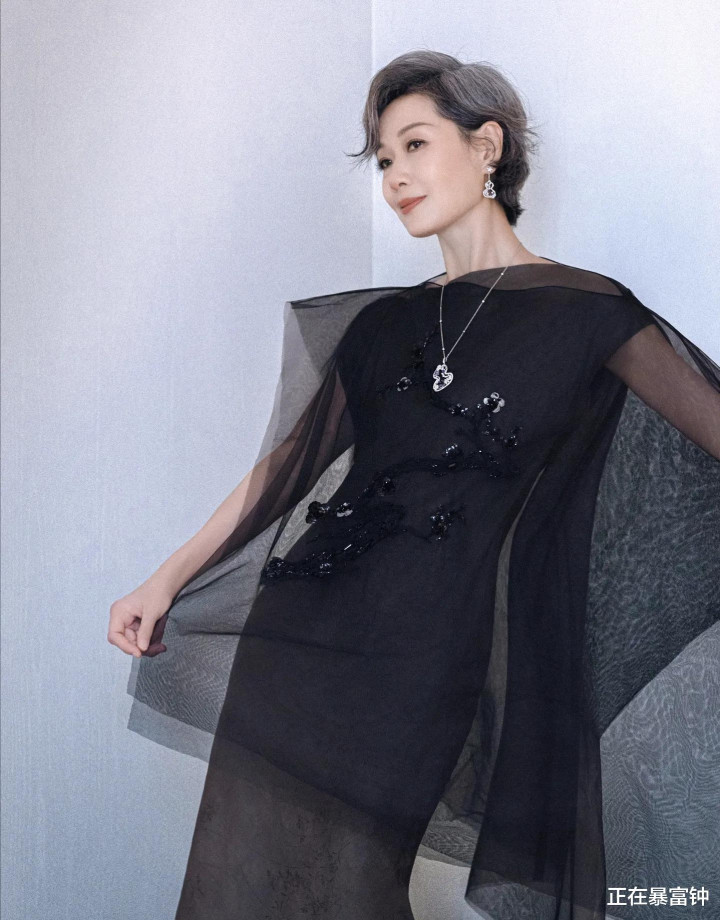 照片中,叶童以标志性的短发造型亮相,银灰发色自带故事感,却丝毫不显沧桑,反倒为她增添了几分历经千帆后的从容。她身着一袭黑色礼裙,独特的剪裁巧妙勾勒肩颈线条,薄纱元素的融入,让端庄中多了丝轻盈。搭配精致的珠宝,葫芦形状的项链、耳饰,将东方美学与时尚感融合,举手投足间,优雅韵味自然流淌。